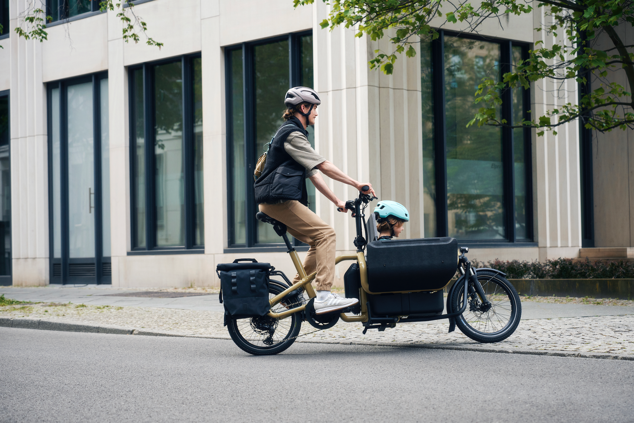 Le vélo cargo à chargement frontal à deux ou trois roues est conçu pour une utilisation rapide et efficace en ville. Son design compact ainsi que sa caisse basse et allongée à l’avant permettent de transporter de lourdes charges ou plusieurs enfants en toute sécurité tout en maintenant une grande agilité et mobilité dans des endroits restreints. Vous pouvez choisir une grande variété d'accessoires de transport pour répondre à tous vos besoins. Ce modèle est très populaire auprès de parents qui souhaitent faciliter les déplacements en milieu urbain et combiner l'exercice physique.